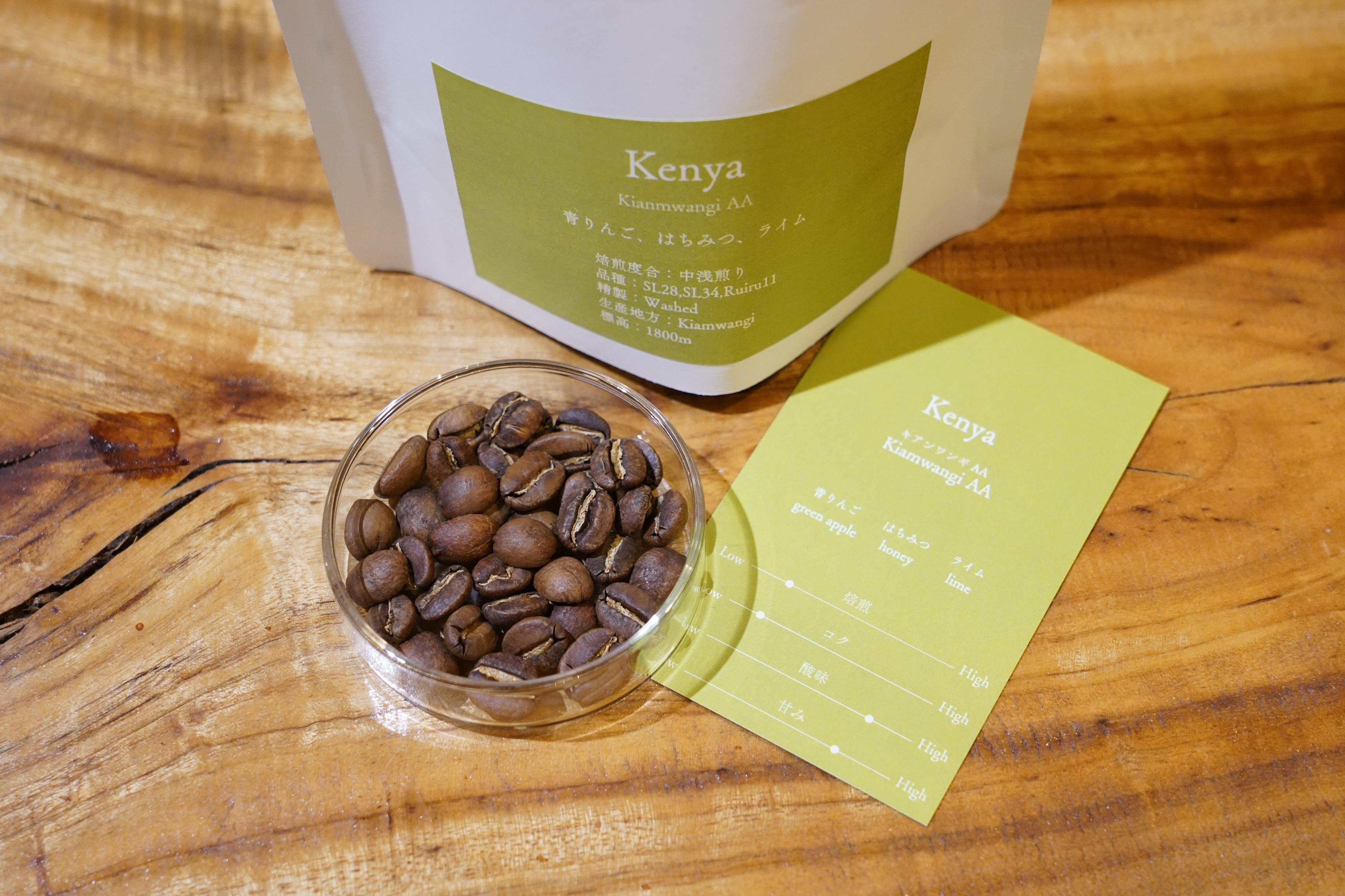ケニア キアンワンギAAは、青リンゴのようなさっぱりとした甘さに加えて、はちみつのような優しいコク、ライムのような爽やかな酸味が特徴のコーヒー豆です。中浅煎りのお豆のため、全体的に爽やかな印象と華やかな酸味が楽しめます。適度な酸味とほんの少しの味わいあるコクがお楽しみいただけます。